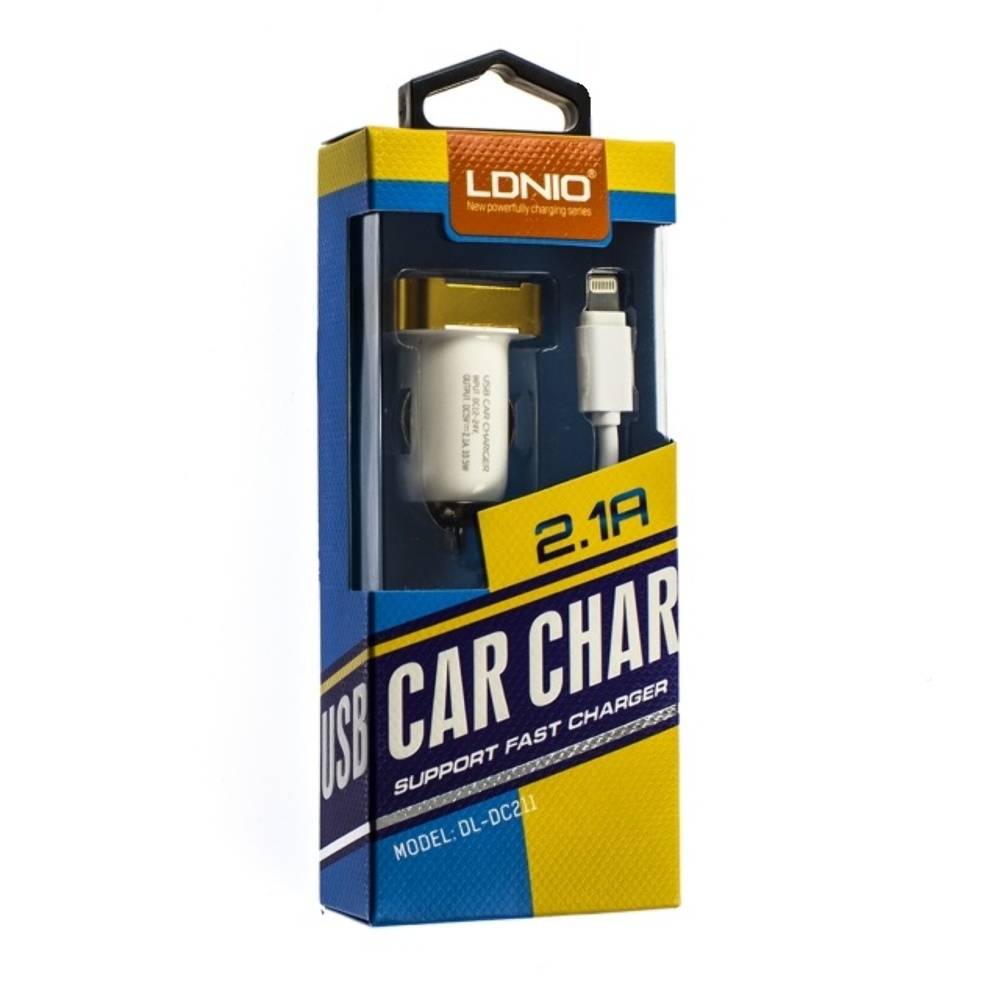 Авто Адаптер LDNIO DL-DC211 2100mAh + Lightning кабель в комплекте белый