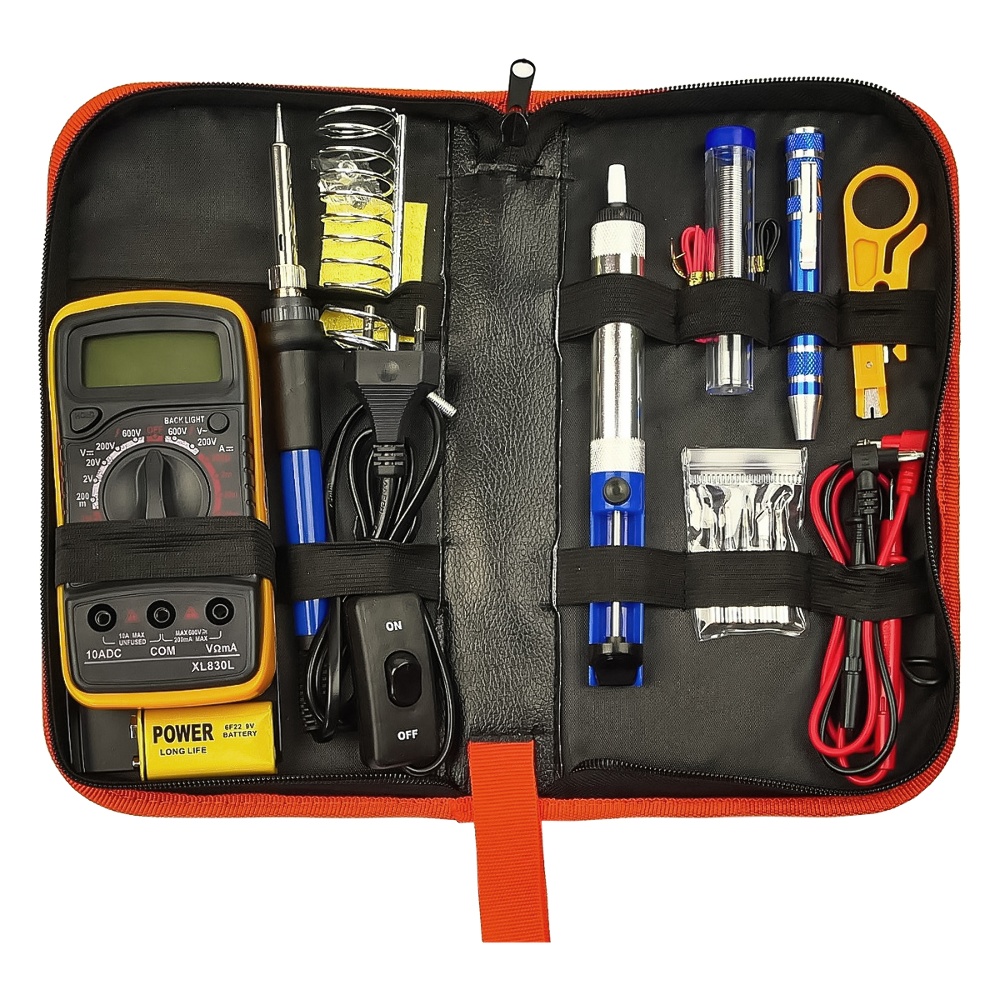 Паяльный набор в пенале Aida A-806+ (паяльник 60W, рег. t 200-450 гр C, жала 900M 6шт, мультиметр, инструменты и расходники)