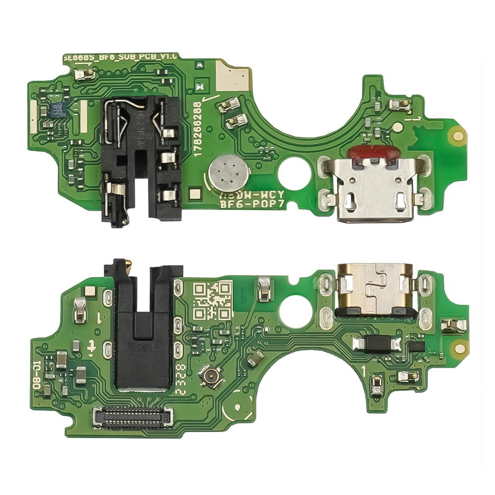 Разъём зарядки для TECNO Pop 7 (BF4) на плате с микрофоном и компонентами