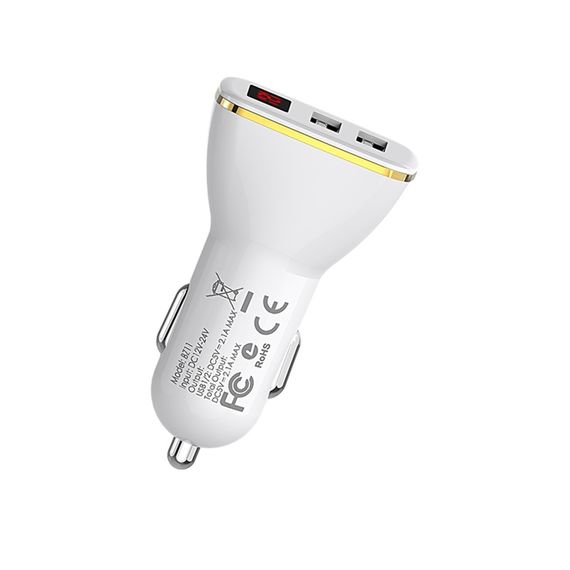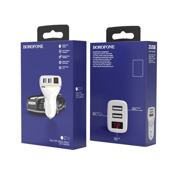 Автомобільний зарядний пристрій 2 USB Borofone BZ11 Digital Display 5v/2.1A чорний
