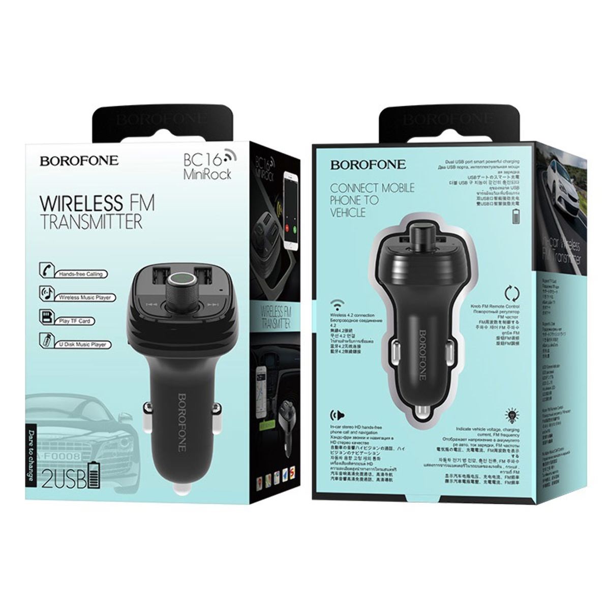 Модулятор Borofone 2 USB BC16 2USB/3,4 чорний з функцією FM-модулятора