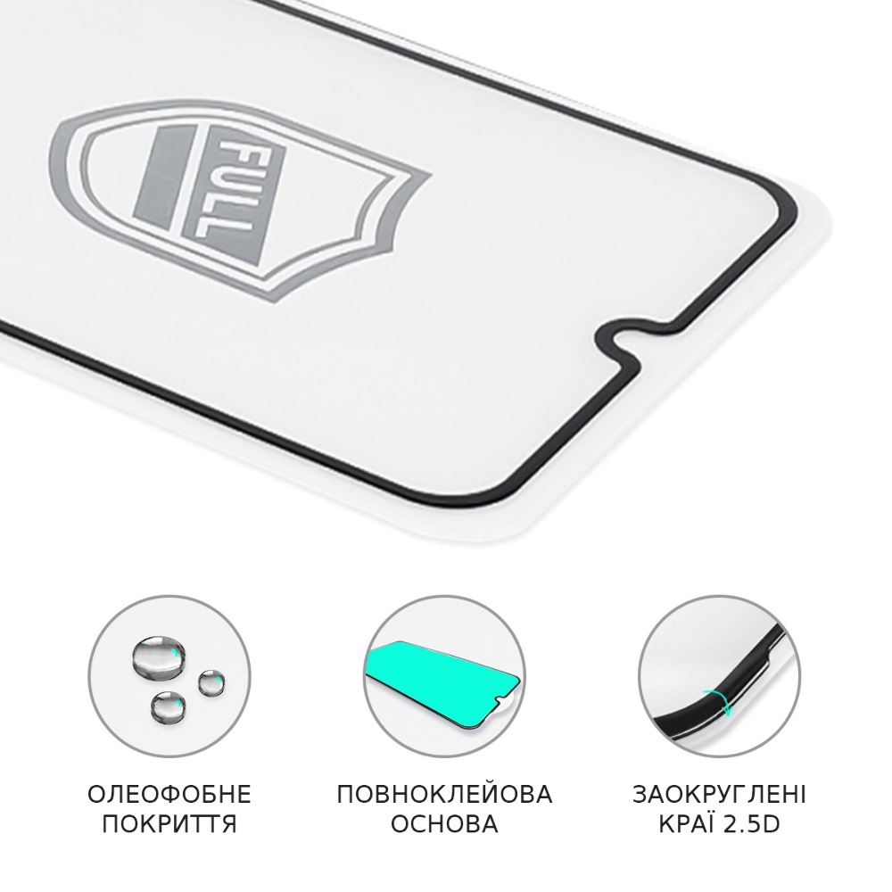Захисне скло для Samsung A20S/ A12/ A02S/ A02/ M12/ M02S/ A03S/A03 Full Glue (0.25 мм, 2.5D, чорний) Люкс