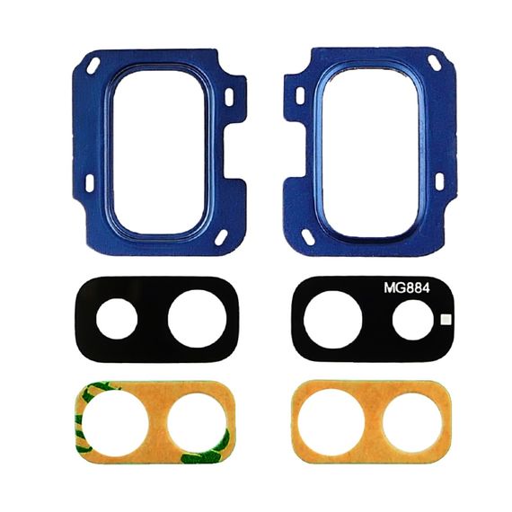 Скло камери для Samsung J810 Galaxy J8 (2018) чорний з синьою рамкою