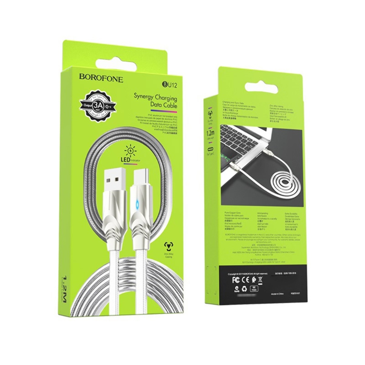 Кабель TYPE-C Borofone BU12 Synergy Type-C (1м, сталевий)