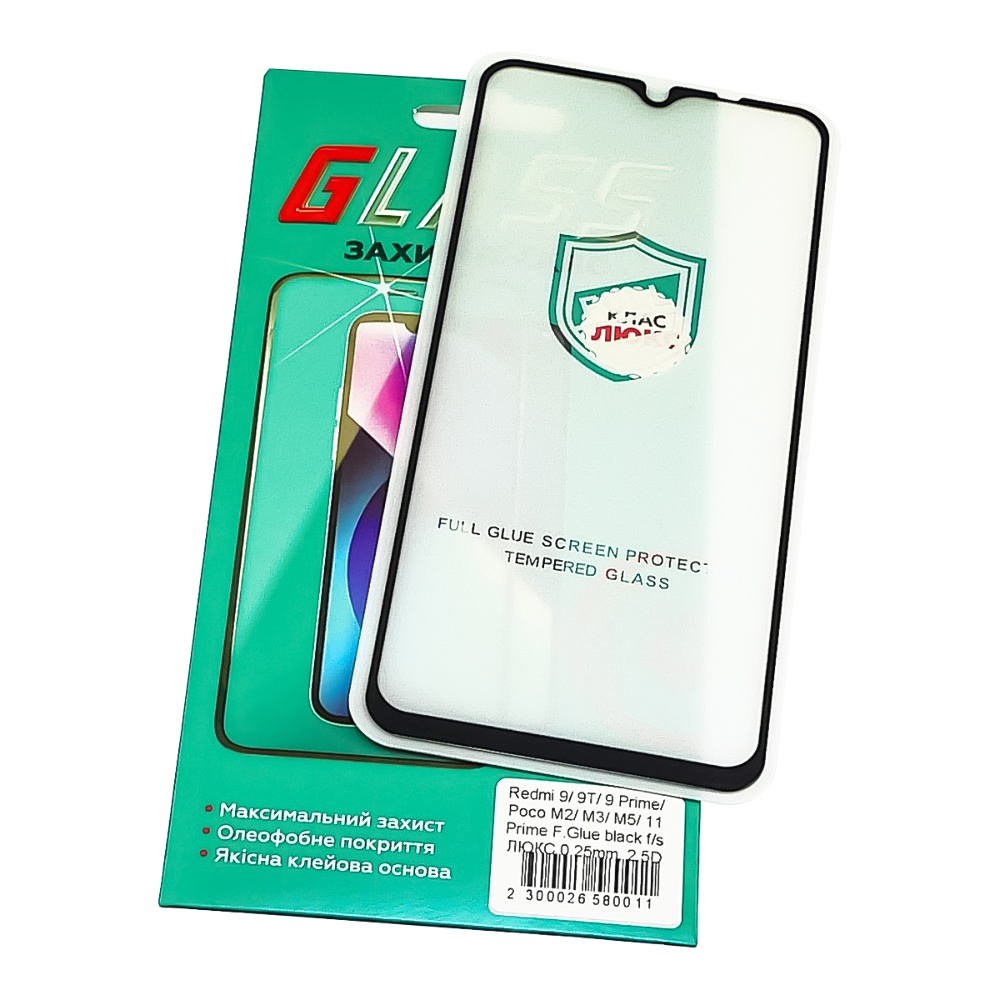 Захисне скло для Xiaomi Redmi 9/9T/9 Prime/Poco M2/M3 Full Glue (0.25 мм, 2.5D, чорний) Люкс