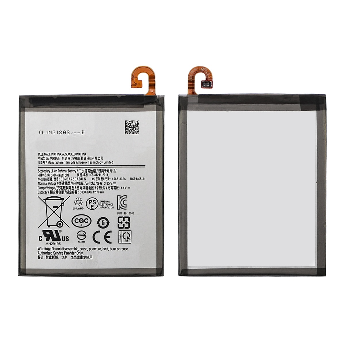 Акумулятор для Samsung A750 A7 (2018)/ A10 A105/ M10 SM-M105/ EB-BA750ABU (Li-ion, 3.85 V, 3300 mAh) оригінал TW