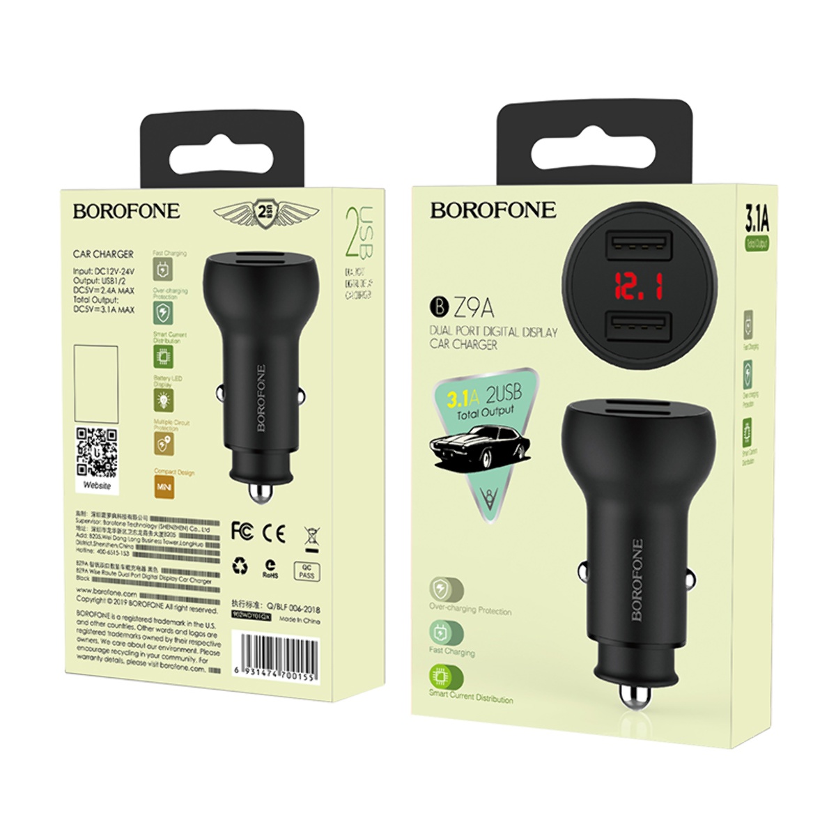 Автомобільний зарядний пристрій 2 USB Borofone BZ9A 2 USB з дисплеєм 3.1А чорний