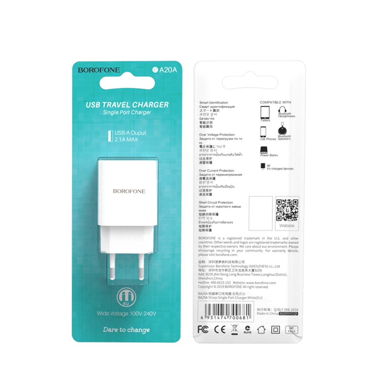 Адаптер USB Borofone BA20A білий - це компактний пристрій, призначений для ефективного заряджання ваших пристроїв через USB-порт. З його допомогою ви можете швидко і зручно підзарядити свої гаджети в будь-якому місці, де є електромережа.