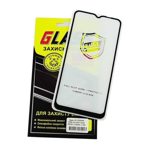 Захисне скло для Oppo A5 (2020)/A9 (2020) Full Glue (0.25 мм, 2.5D, чорний) Люкс