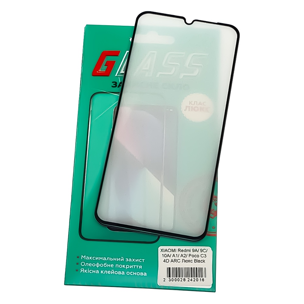 Захисне скло для Xiaomi Redmi 9A/9C/Poco C3 (0.3 мм, 4D ARC чорний) Люкс