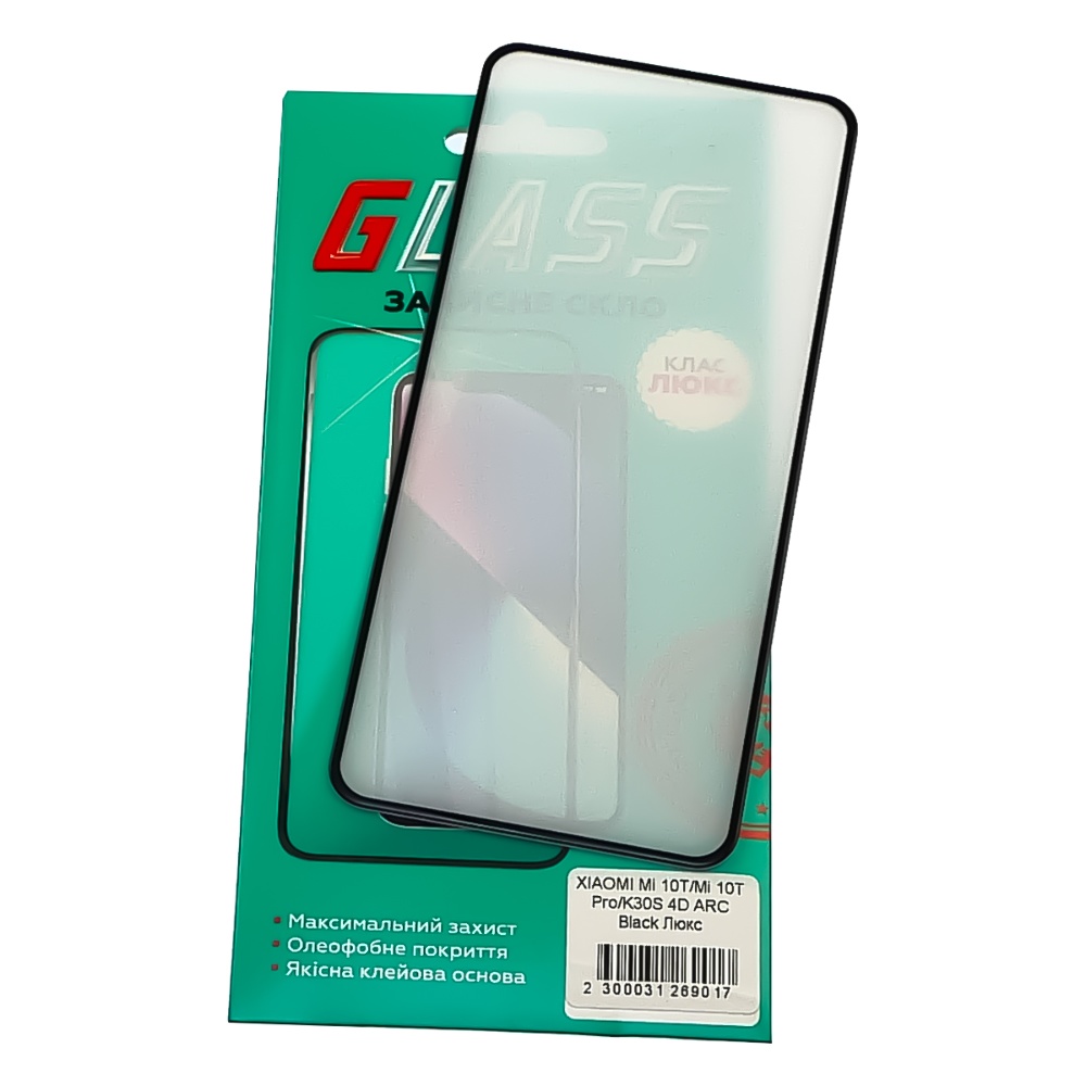 Захисне скло для Xiaomi Mi 10T/Mi 10T Pro/K30S (0.3 мм, 4D ARC чорний) Люкс