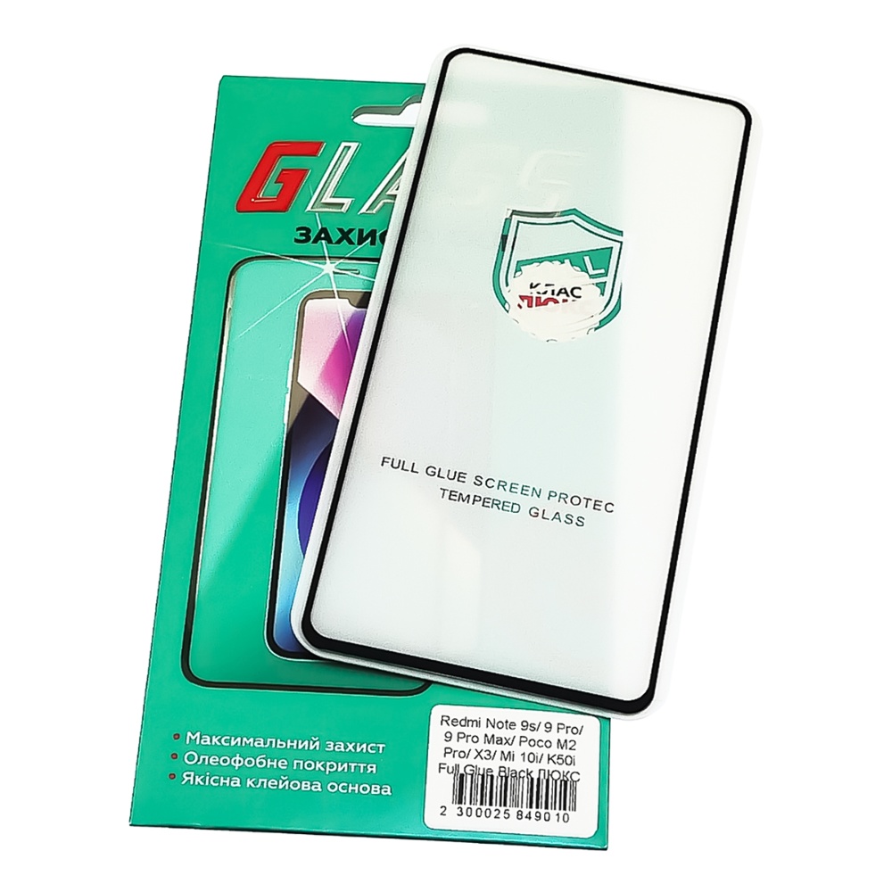 Захисне скло для Xiaomi Redmi Note 9 Pro Max/Poco X3 Full Glue (0.25 мм, 2.5D, чорний) Люкс