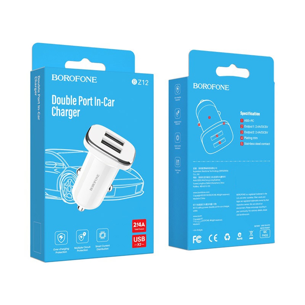 Автомобільний зарядний пристрій 2 USB Borofone BZ12 2 USB 2.4A білий