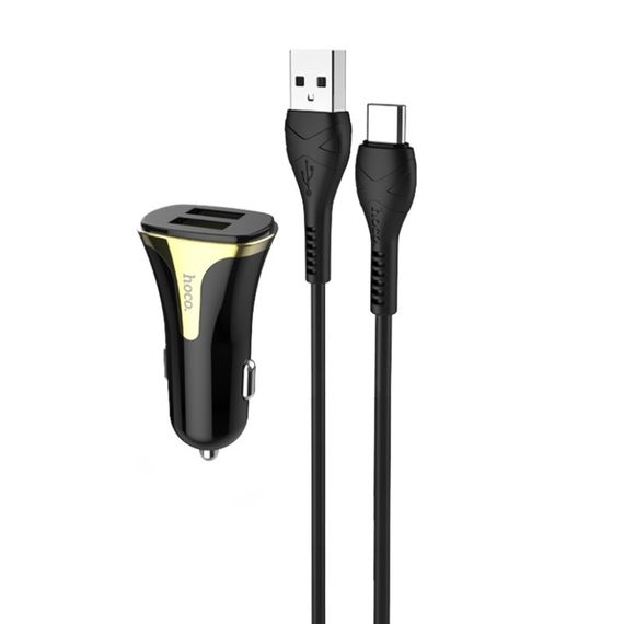 Автомобільний зарядний пристрій 2 USB HOCO Z31 QC 3.0 18W +Type-C чорний