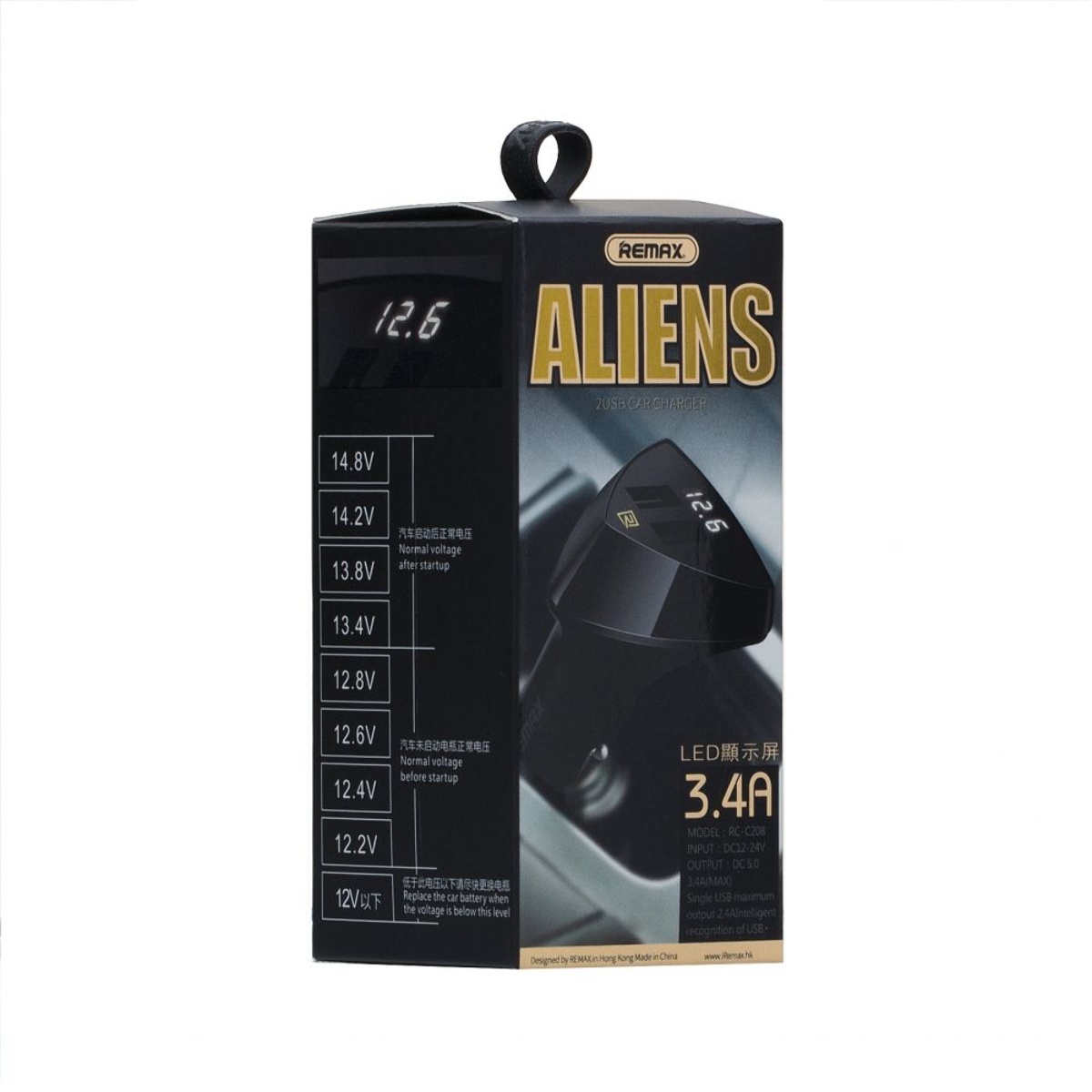 Автомобільний зарядний пристрій 2 USB Remax RC-C208 Led 3.4A чорний