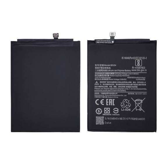 Акумулятор для Xiaomi BN54 Redmi Note 9/ Redmi 9/ Redmi 10X оригінал TW