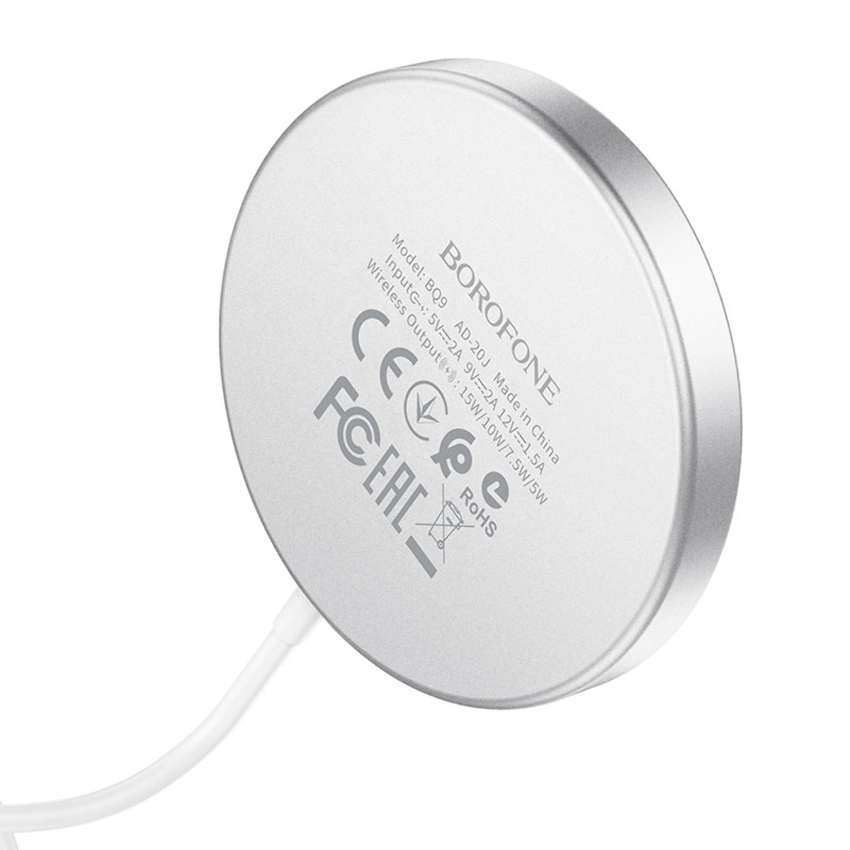 Бездротовий адаптер Borofone BQ9 Pro 15W у сріблястому виконанні є інноваційним пристроєм для ефективної бездротової зарядки ваших пристроїв.