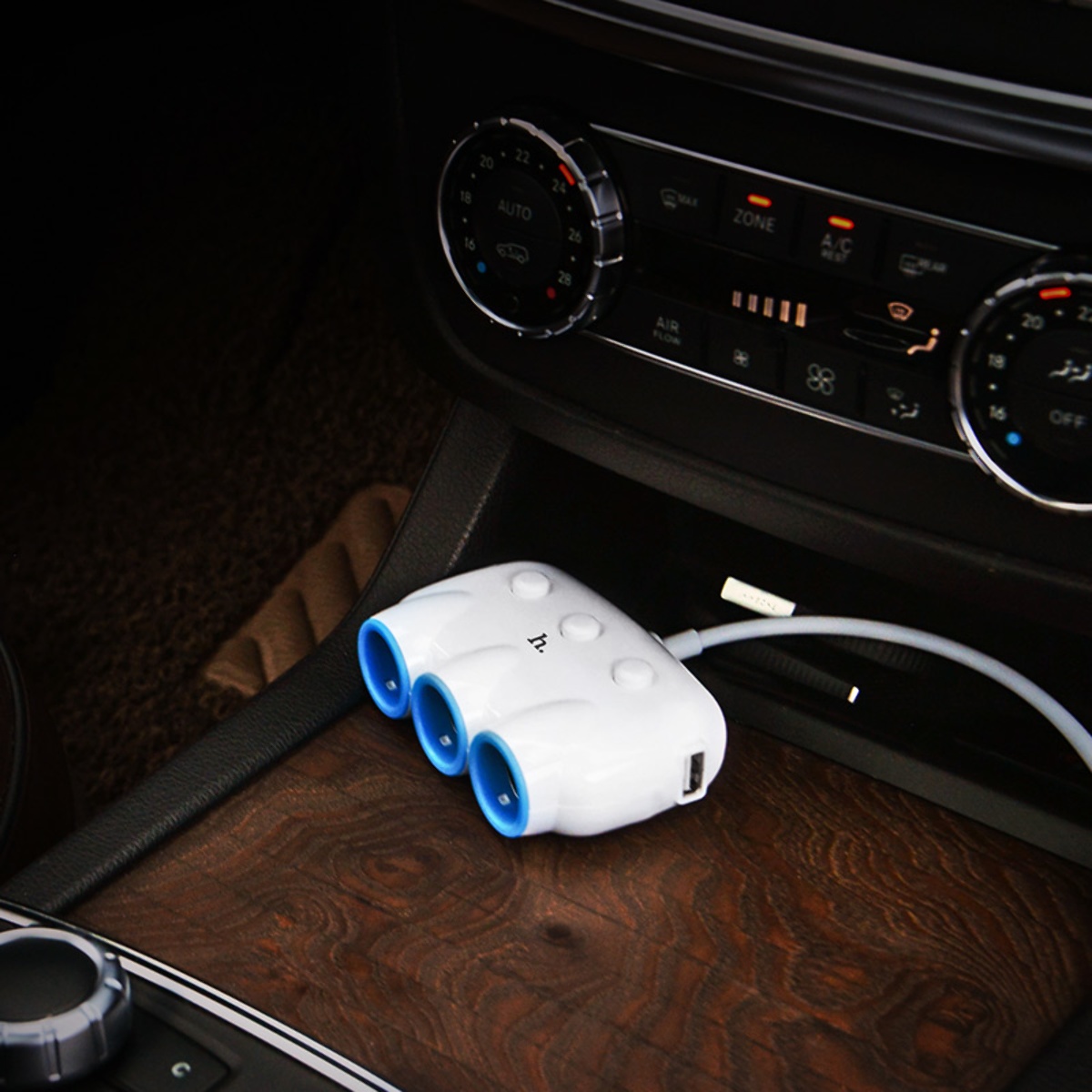 Автомобільний зарядний пристрій 2 USB HOCO C1 2 USB розгалужувач прикурювача білий