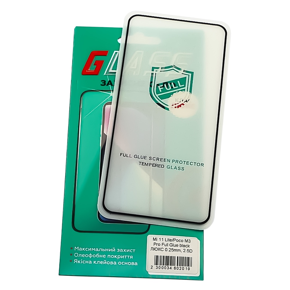 Захисне скло для Xiaomi Mi 11 Lite Full Glue (0.25 мм, 2.5D, чорний) Люкс