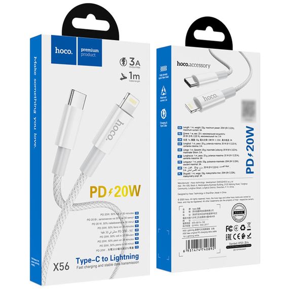 USB кабель HOCO X56 1m 3A Type-C на Lightning білий