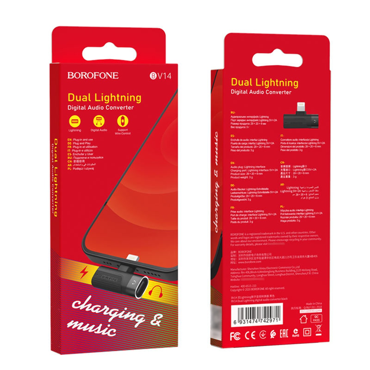OTG перехідник Borofone BV14 Lightning на подвійний Lightning цифровий аудіо конвертер чорний