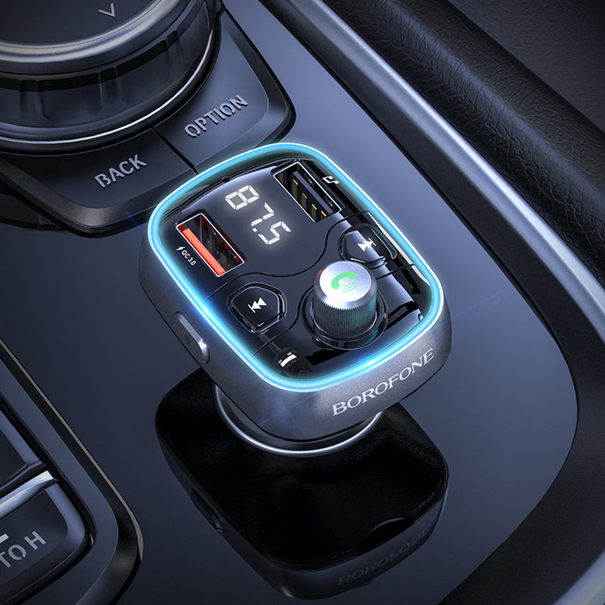 Модулятор Borofone 2 USB BC32 2 USB QC3.0 чорний з функцією FM-модулятора
