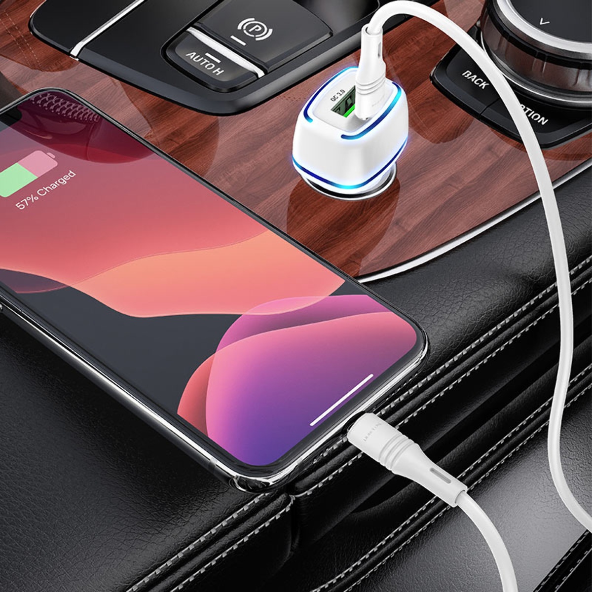 Автомобільний зарядний пристрій 2 USB Borofone BZ14A 1 USB QC+PD 20W білий