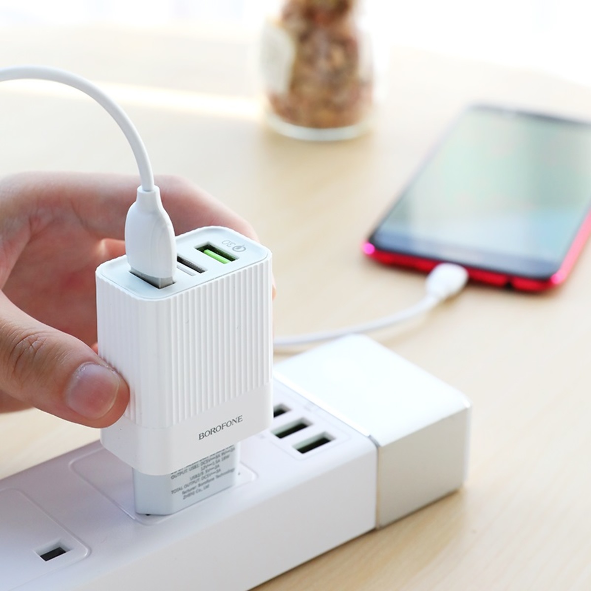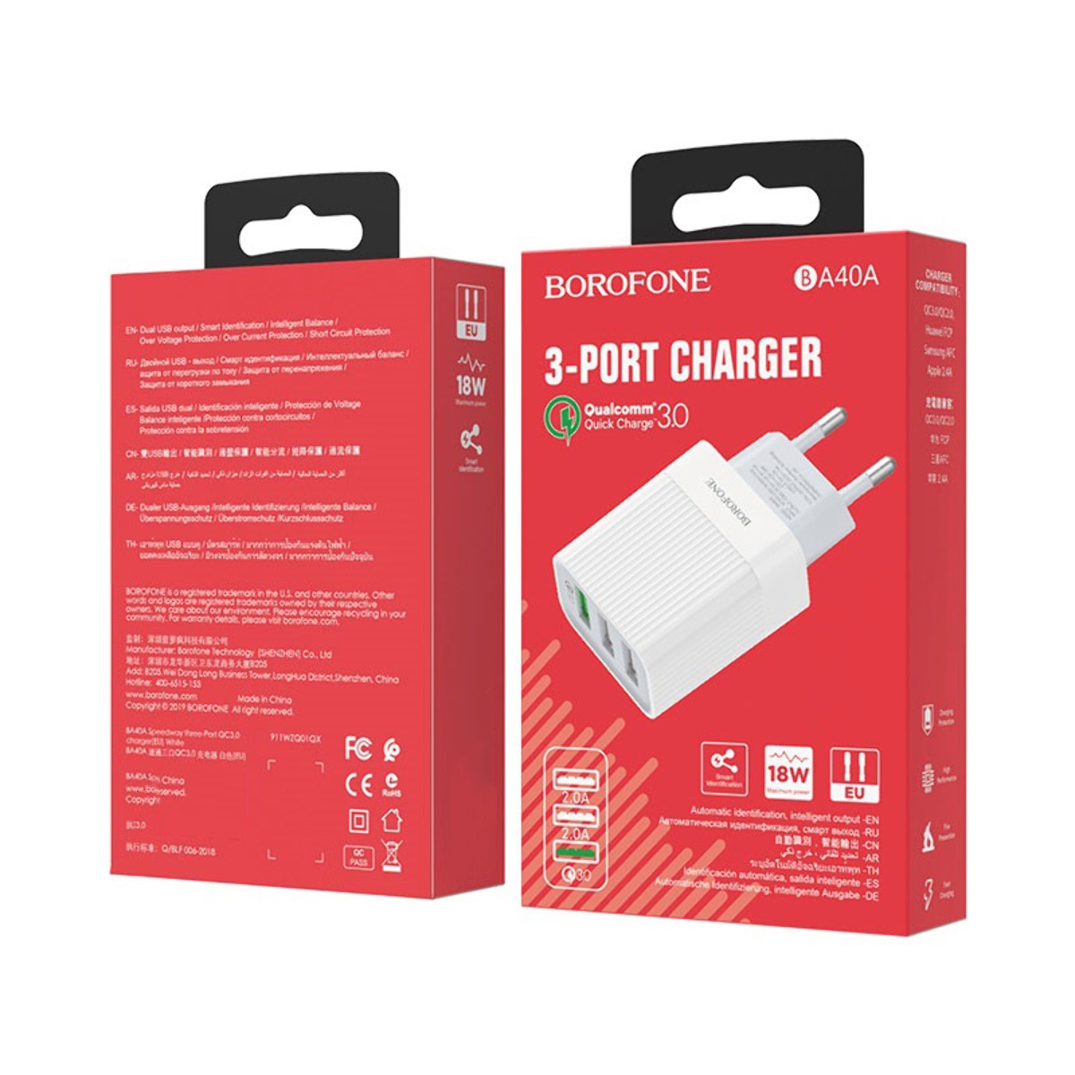 Адаптер USB Borofone BA40A 3 USB QC3.0 білий
