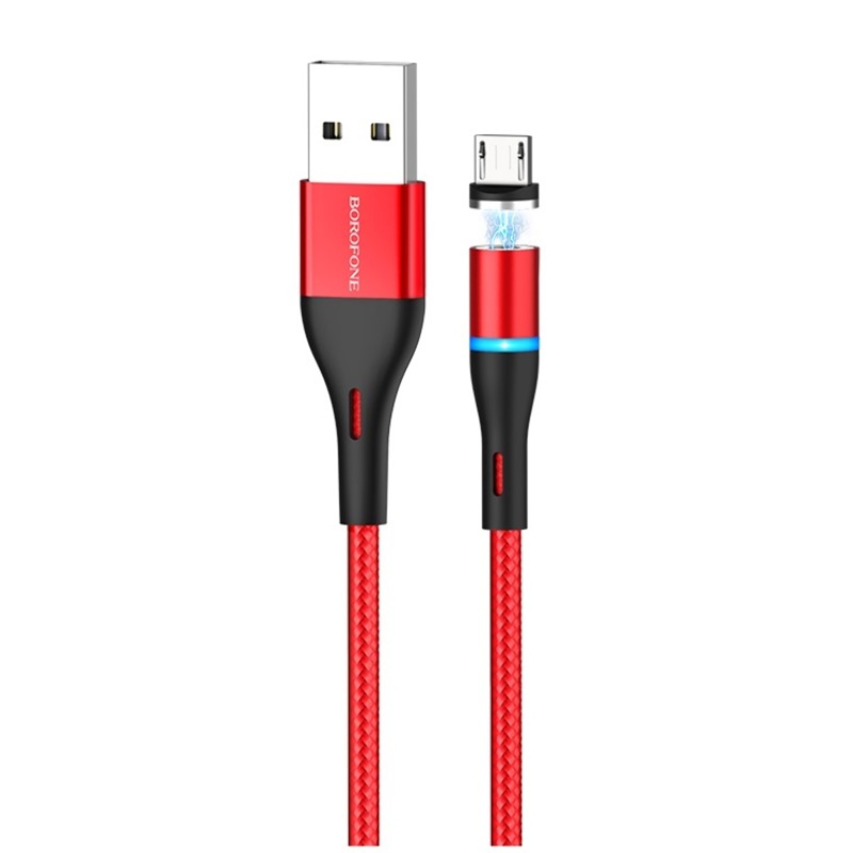 USB кабель магнітний Borofone BU16 Micro 1,2m 2.4A червоний