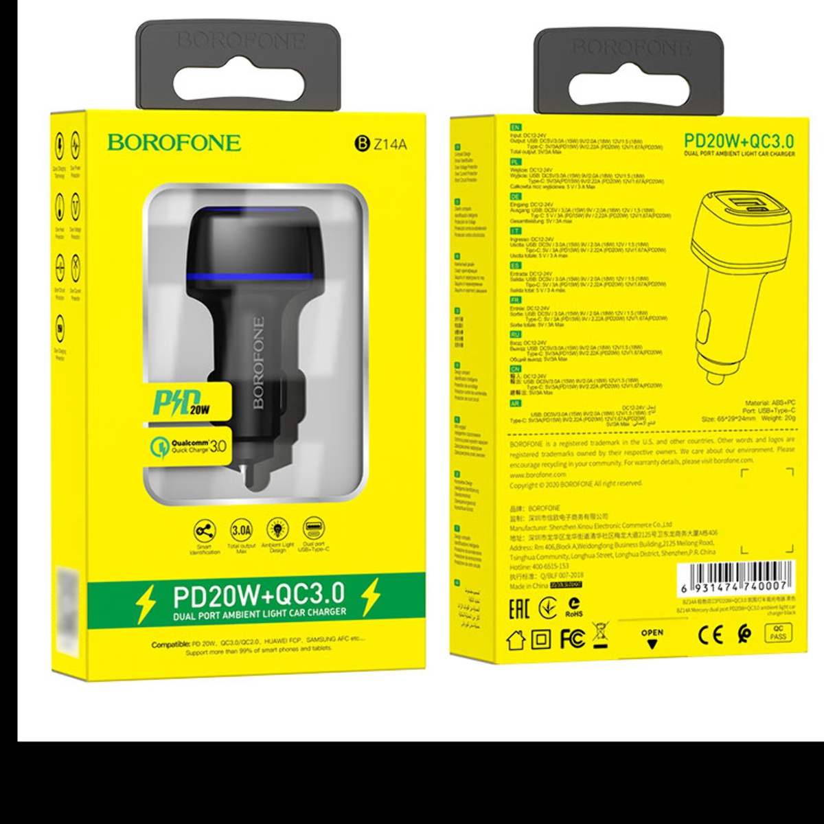 Автомобільний зарядний пристрій 2 USB Borofone BZ14A 1 USB QC+PD 20W чорний