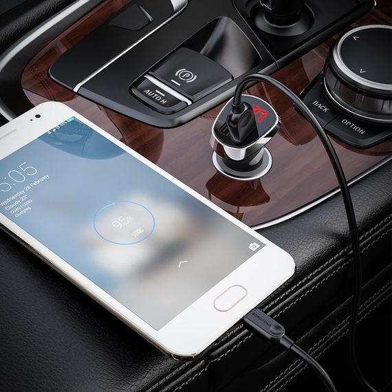 Автомобільний зарядний пристрій 2 USB Borofone BZ15 2 USB 2.4A Micro з дисплеєм чорний