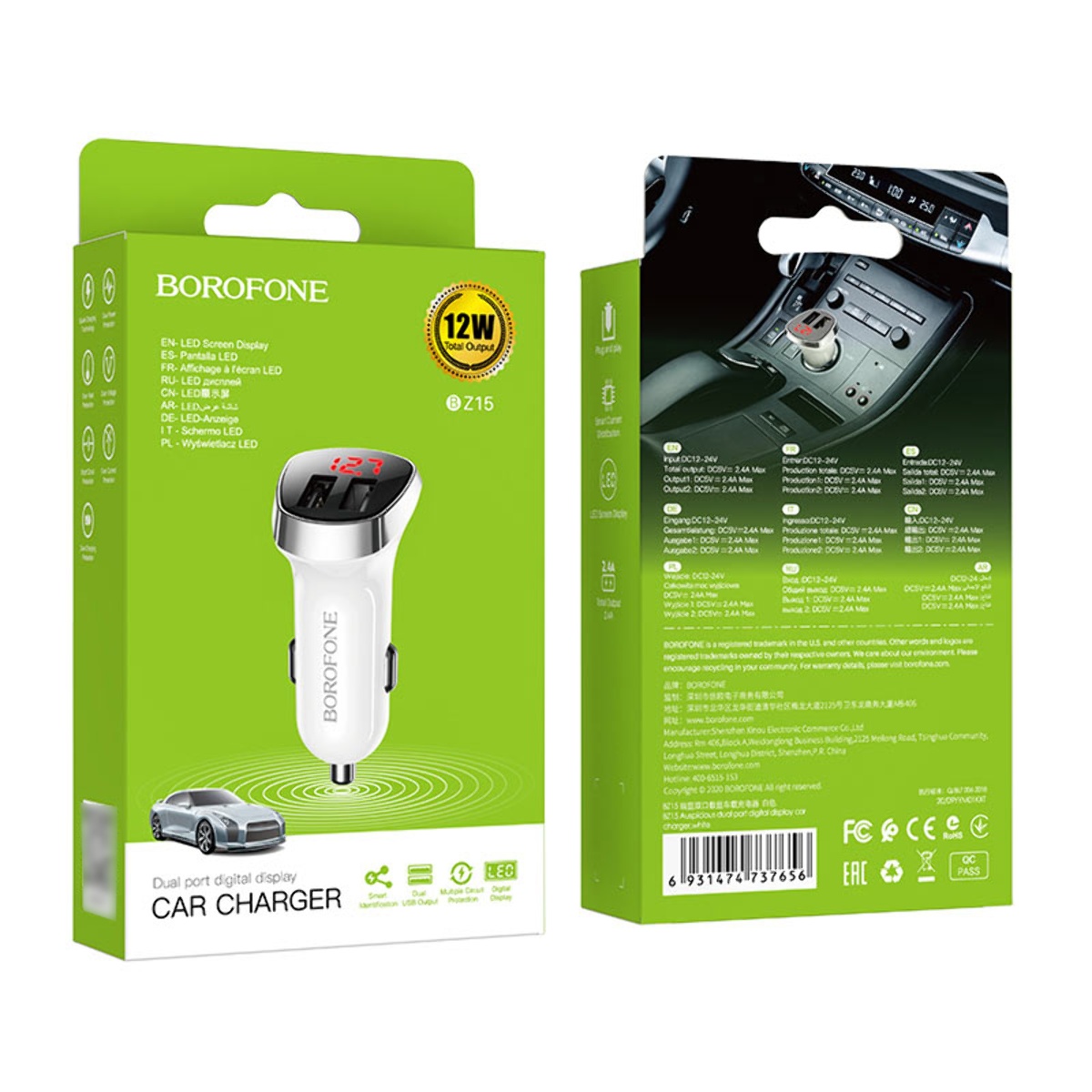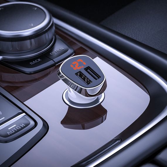 Автомобільний зарядний пристрій 2 USB Borofone BZ15 2 USB 2.4A з дисплеєм білий