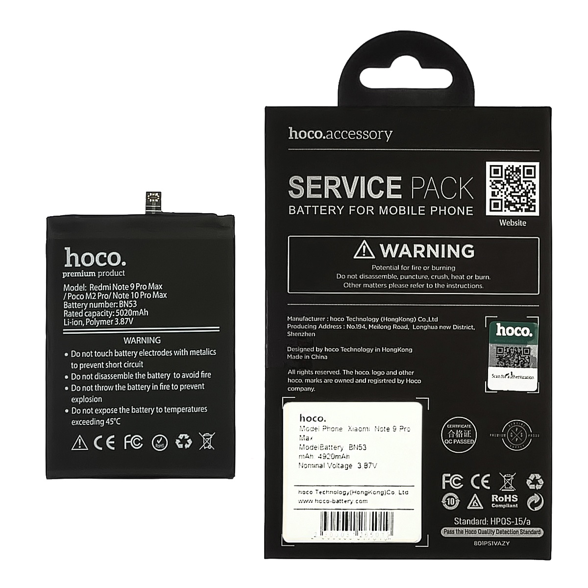 Акумулятор Hoco для Xiaomi BN53 Redmi Note 9 Pro Max/ Poco M2 Pro/ Note 10 Pro Max - це високоякісна батарея, яка спроектована для заміни старого або пошкодженого акумулятора у Вашому смартфоні. Вона забезпечує необхідне живлення Вашого пристрою, дозволяючи йому працювати довгий час без підзарядки. Акумулятор Hoco - це надійне джерело енергії для Вашого смартфона.