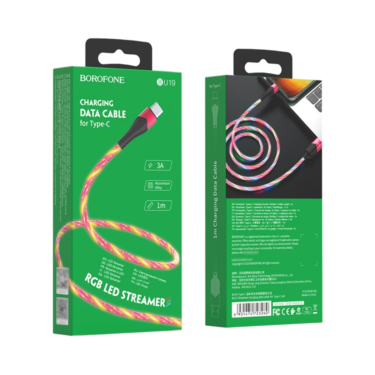 USB кабель Borofone BU19 Type-C 1m червоний