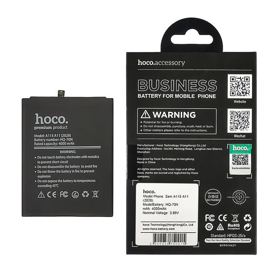 Акумулятор Hoco для Samsung A115 A11 (2020) / HQ-70N - це високоякісна батарея, яка спроектована для заміни старого або пошкодженого акумулятора у Вашому смартфоні. Вона забезпечує необхідне живлення Вашого пристрою, дозволяючи йому працювати довгий час без підзарядки. Акумулятор Hoco - це надійне джерело енергії для Вашого смартфона.