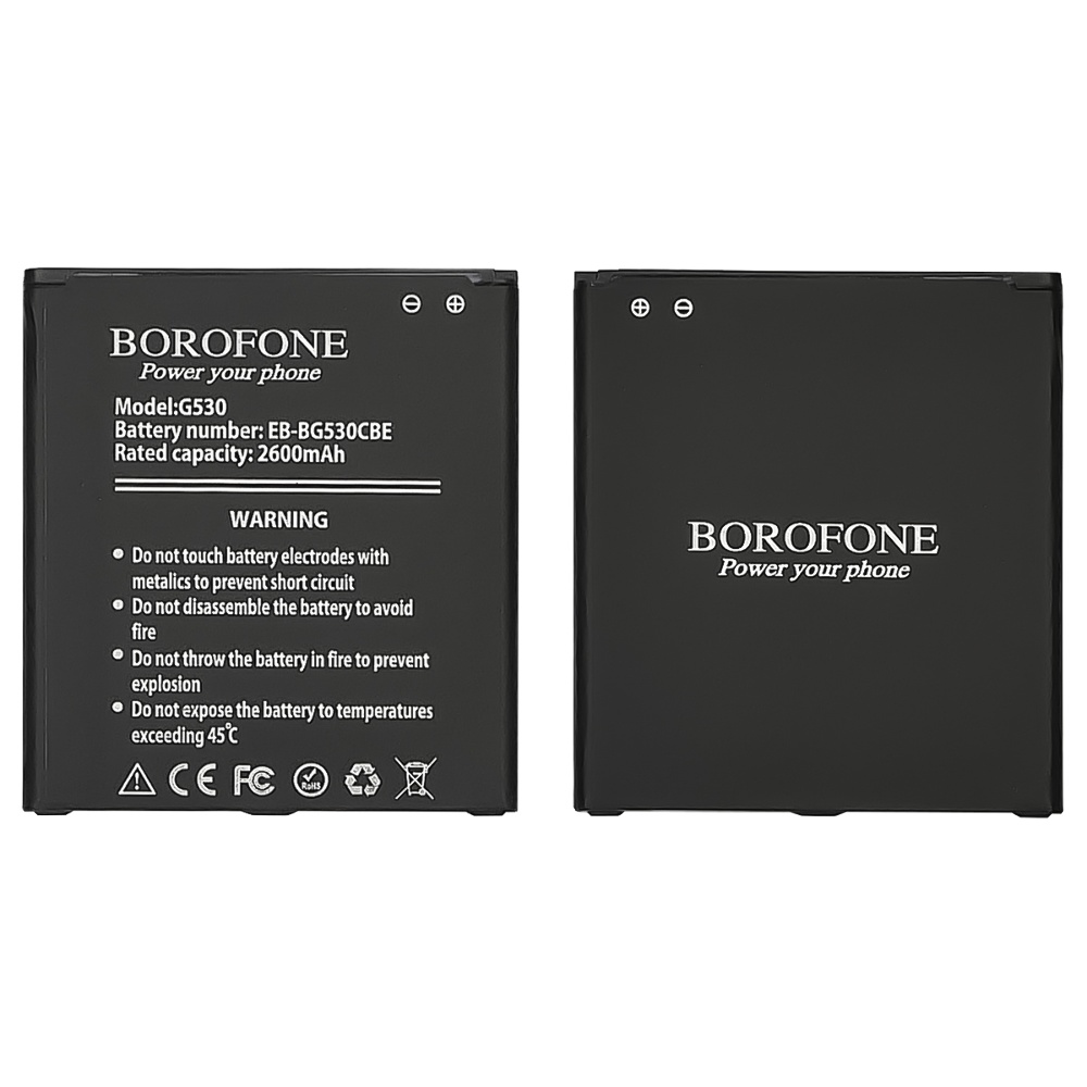 Акумулятори BOROFONE — це відмінне рішення для тих, хто шукає надійне джерело енергії для Samsung G530/ G531/ J250F J2 (2018)/ J320H J3 (2016)/ J500H J5/ EB-BG530CBE (Li-ion 3.8V 2600mAh). З ними ваш пристрій завжди буде готовий до роботи, незалежно від обставин.