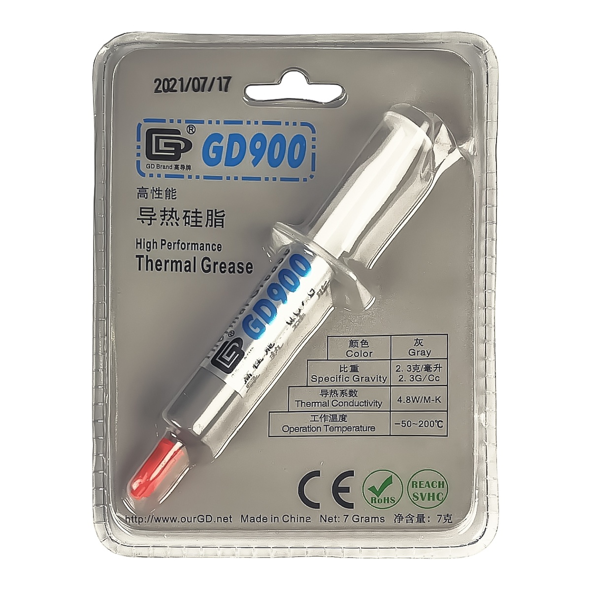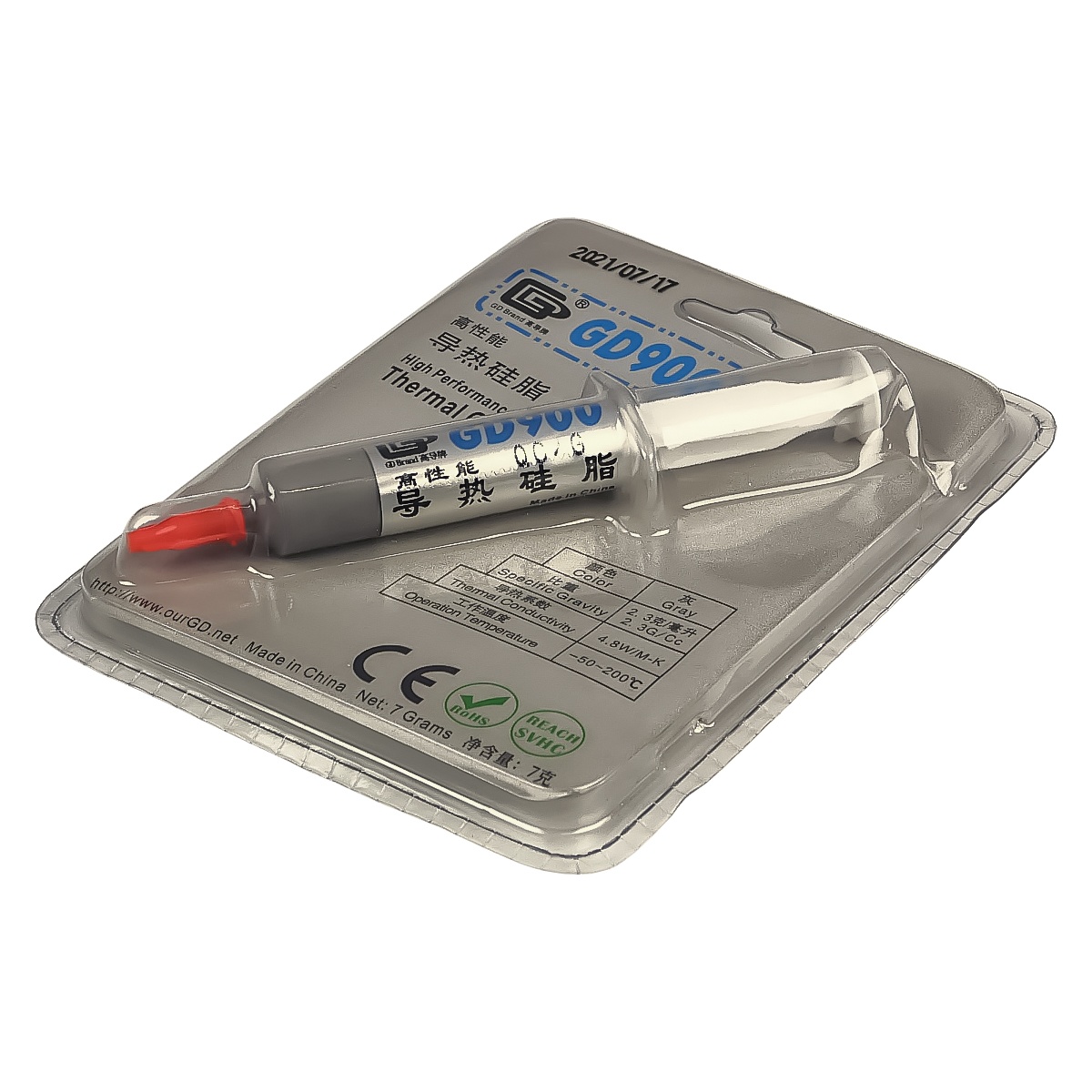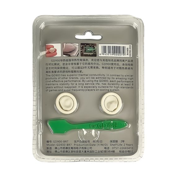 Термопаста у шприці GD900, 7г, теплопровідність 4.8 W/mK, щільність 2.3 г/см3, лопатка пластикова, 2 напальчники
