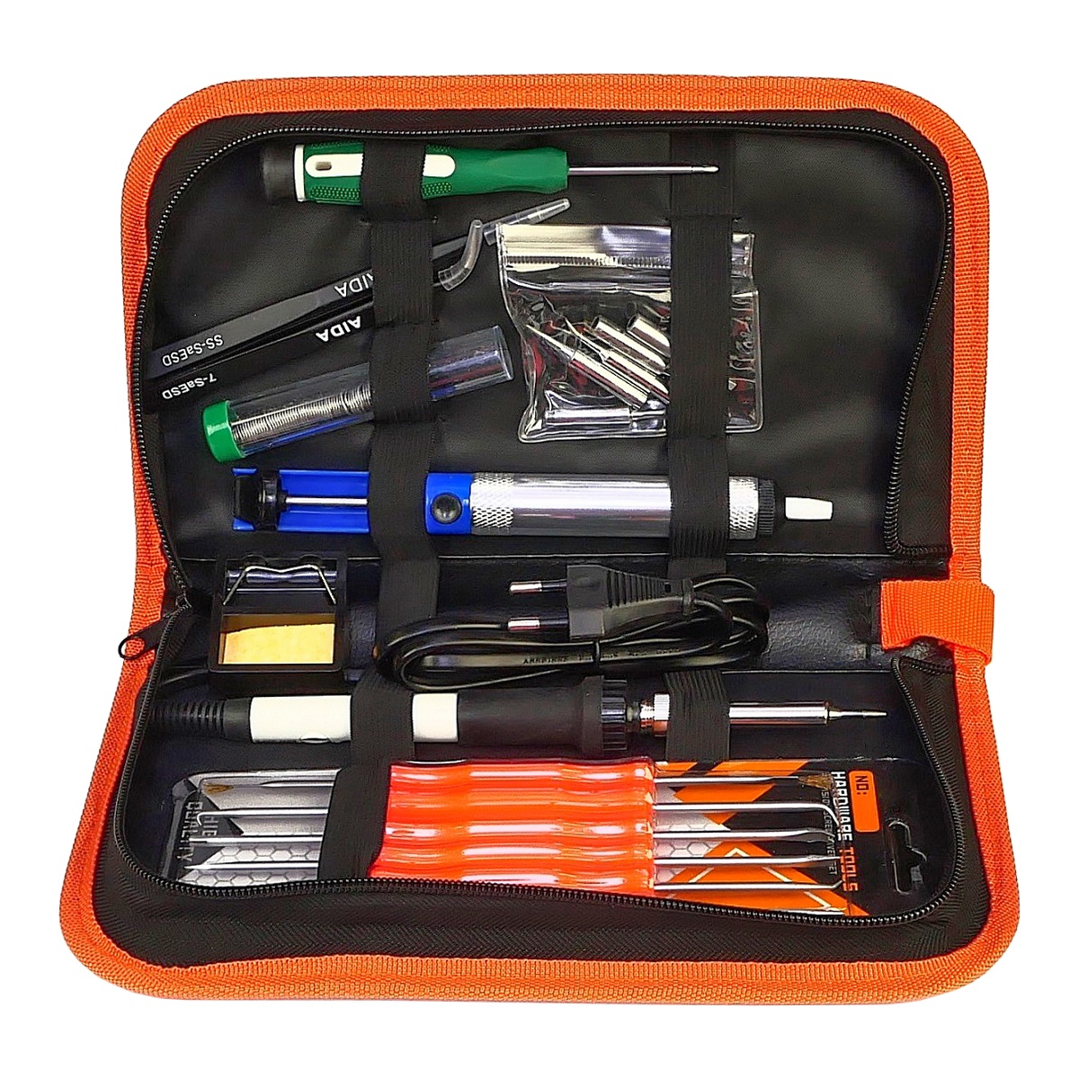 Паяльний набір у пеналі Chanseon (паяльник 60W, рег. t 200-450 гр C, жала 900M 6шт, інструменти та розхідники)