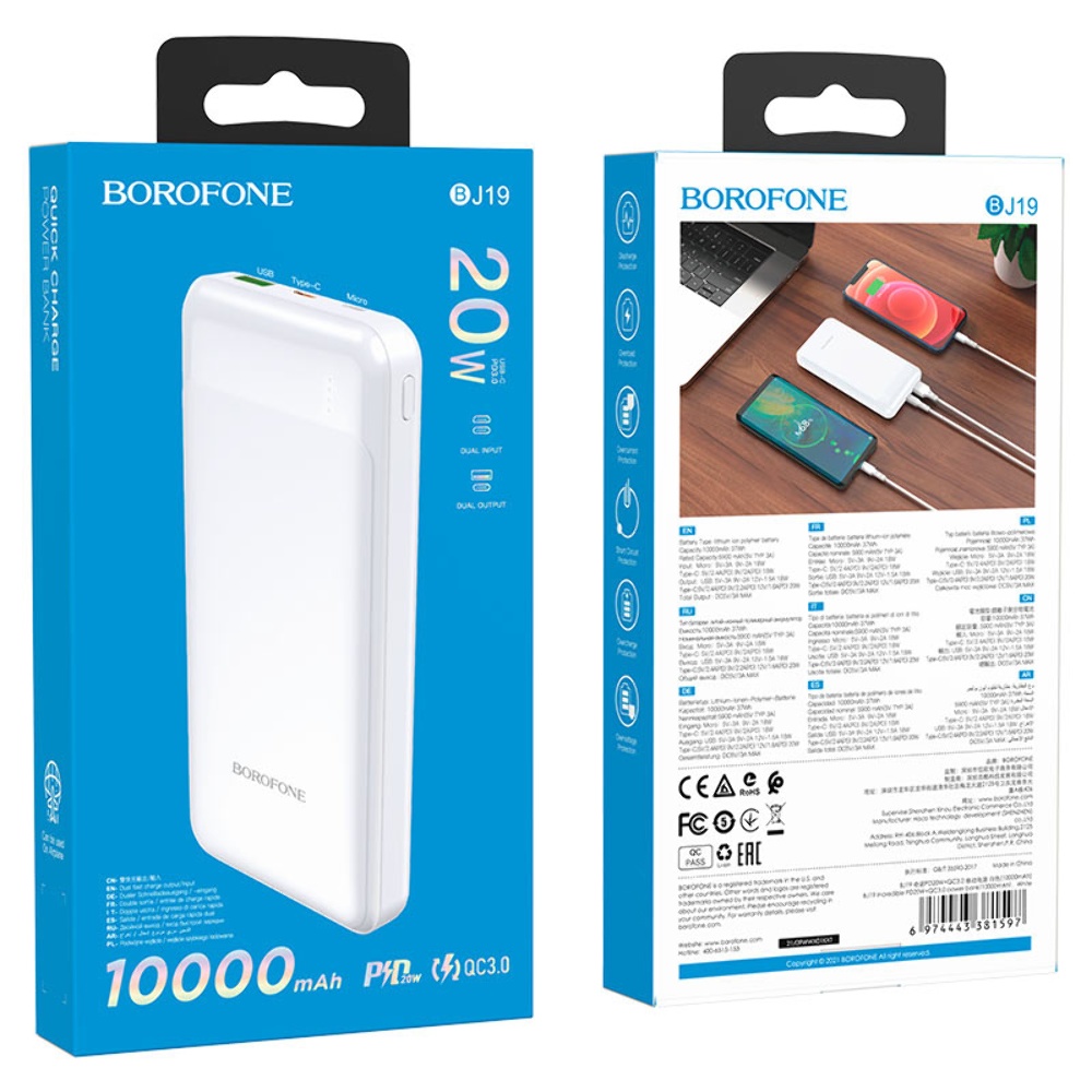 Power Bank Borofone 10000 mAh BJ19 PD20W+QC3.0 білий