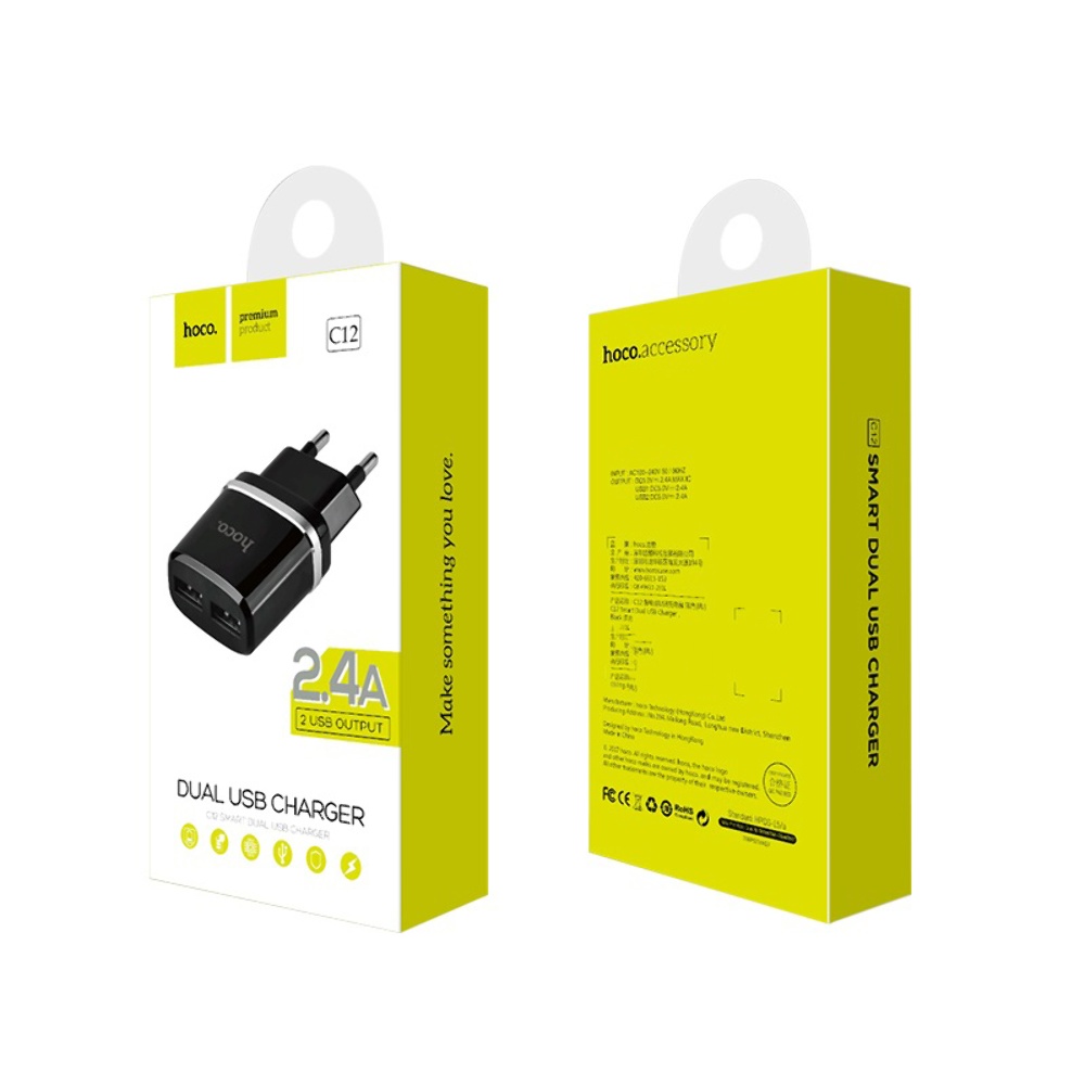 Мережевий зарядний пристрій Hoco C12 у чорному виконанні - це надійний та зручний пристрій для заряджання ваших гаджетів. З двома USB-портами та вихідною потужністю 2.4A воно забезпечує ефективне та швидке зарядне рішення для декількох пристроїв одночасно.