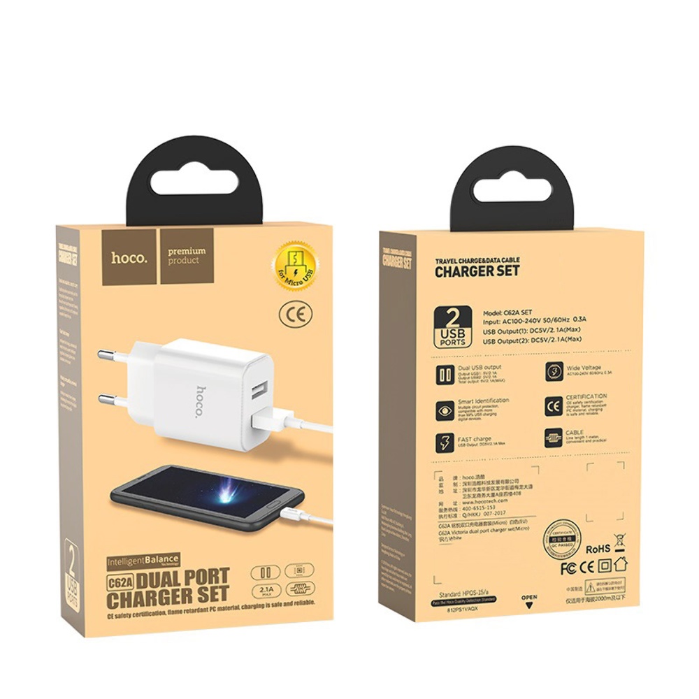 Мережевий зарядний пристрій Hoco C62A 2 USB 2.1A Micro білий