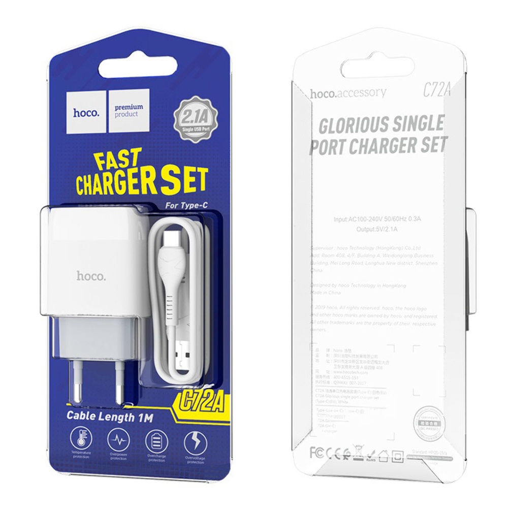 Мережевий зарядний пристрій Hoco C72A 1 USB 2.1A Type-C білий