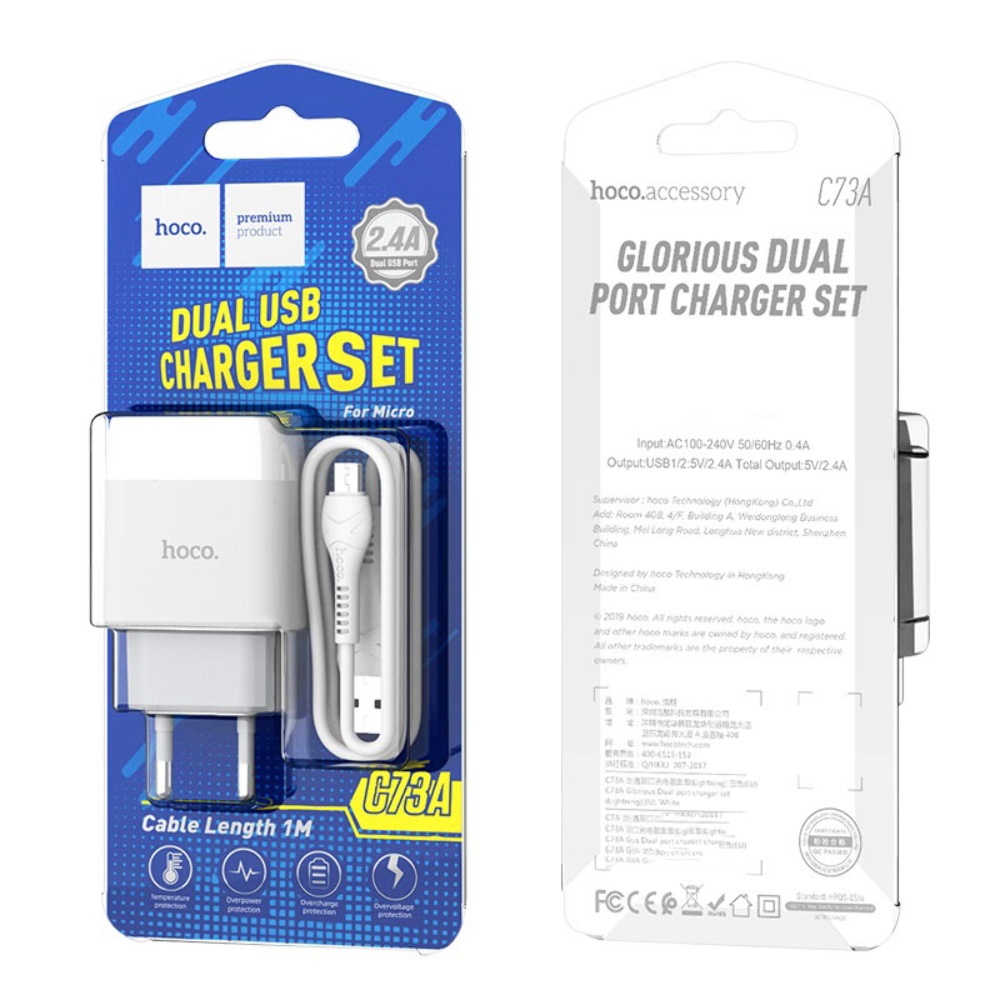 Мережевий зарядний пристрій Hoco C73A 2 USB 2.4A Micro білий