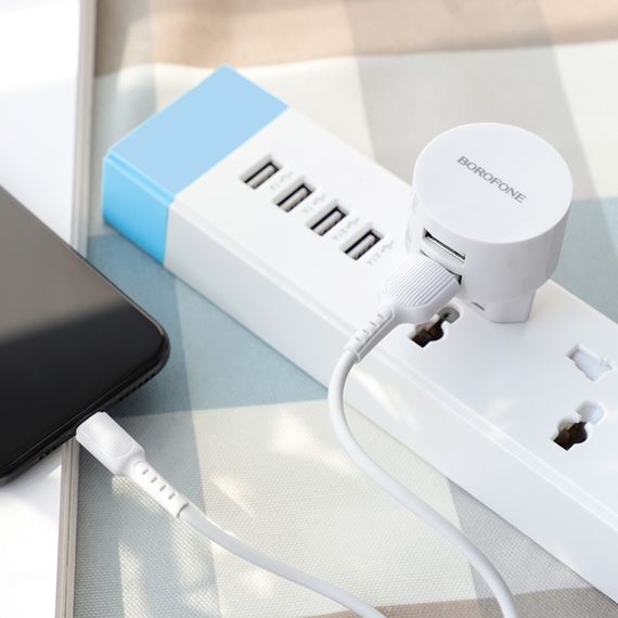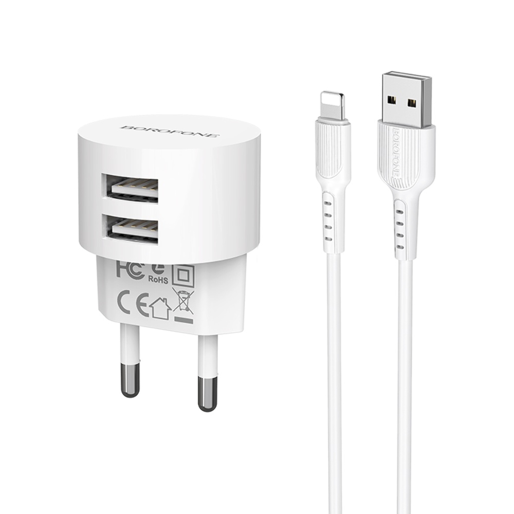Мережевий зарядний пристрій Borofone BA23A 2 USB 2.4A Lightning білий