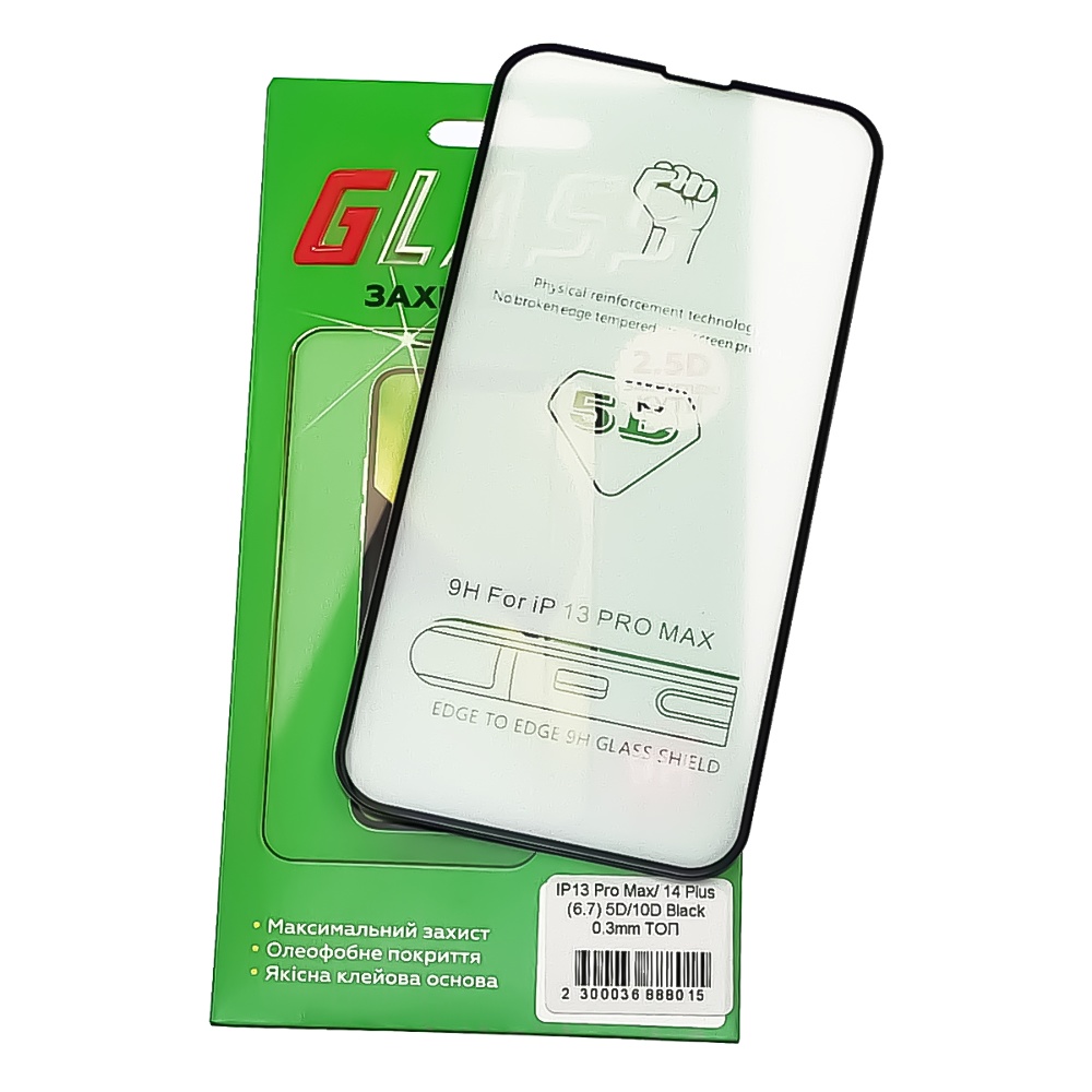 Захисне скло для Apple iPhone 13 Pro Max (6.7) (0.3 мм, 5D/10D чорний) ТОП