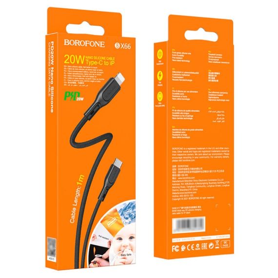 USB кабель Borofone BX66 Type-C to Lightning 1m 3A чорний