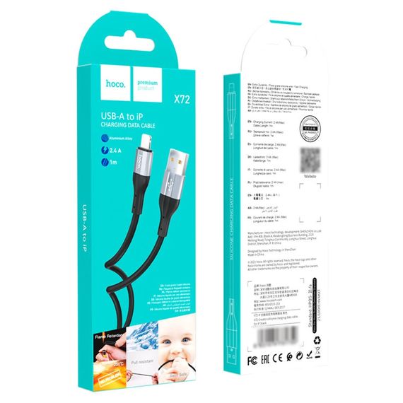 USB кабель Hoco X72 Lightning 2.4A 1m чорний