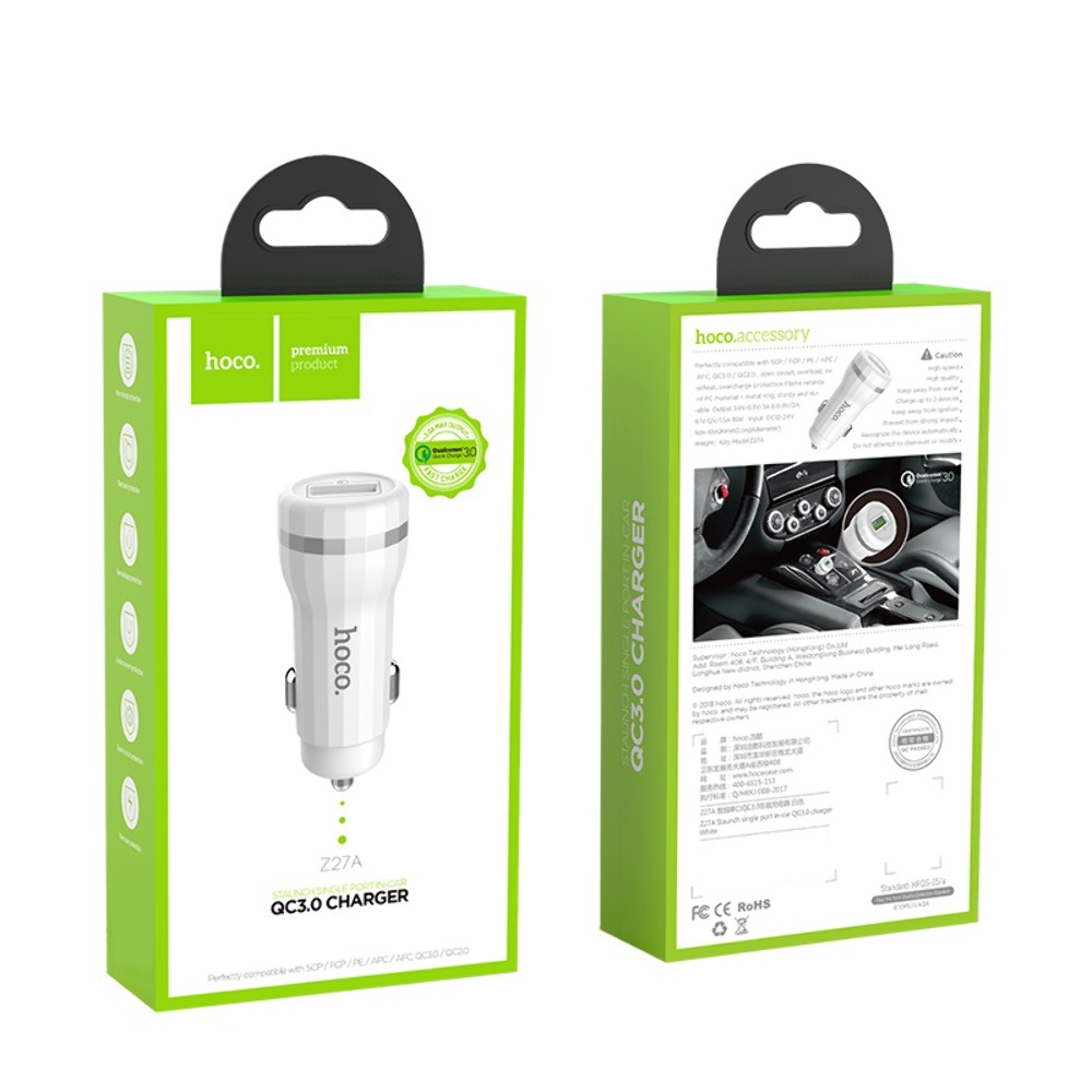 Автомобільний зарядний пристрій Hoco Z27A 1 USB QC 3.0 18W білий