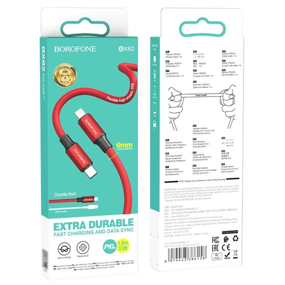 USB кабель Borofone BX82 Type-C 3A 1m червоний