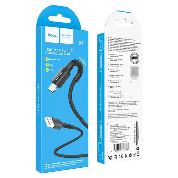 USB кабель Hoco X71 Type-C 3A 1m чорний